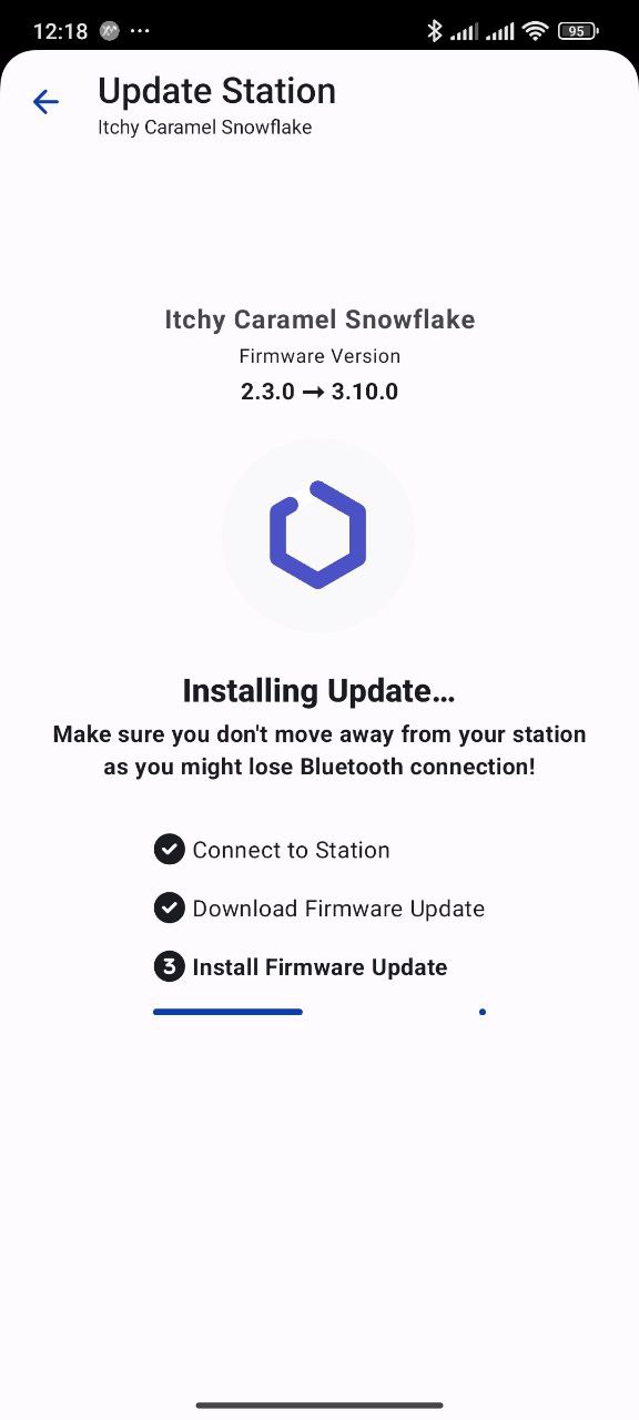 The process is done wirelessly via bluetooth and requires you to be at a distance of ~<10m/32ft from the station.